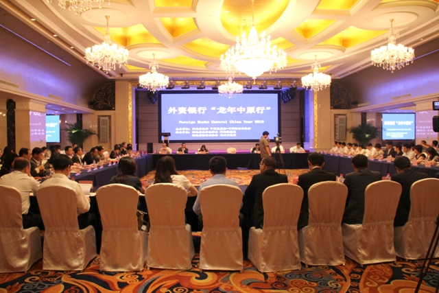 河南省政府金融办、河南省银监局、河南省商务厅及郑州市政府的相关领导分别介绍了河南经济金融发展情况、河南省涉外经济发展情况、郑州市经济社会发展及郑东新区金融集聚核心功能区建设情况等。宇通客车、郑煤机等河南省优秀企业代表和考察团外资银行代表也在恳谈会上进行了深入交流。