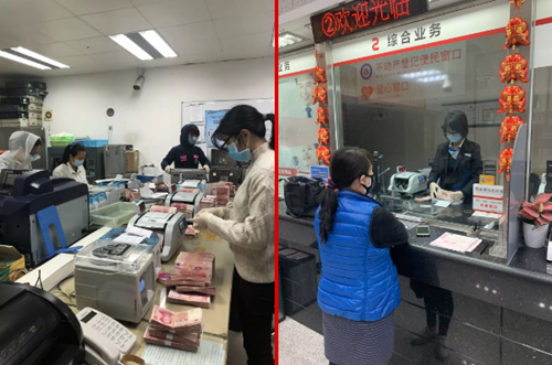1月30日上午,东莞农商银行常平木棆支行行长的电话响了。这是木棆村委会出纳的电话,他想咨询关于村组账户取现事宜。由于疫情发展超出预期,木棆村的防疫物资出现短缺,现急需购买口罩、消毒液等。了解情况后,支行迅速启动应急预案,安排工作人员对木棆支行营业网点进行彻底消毒清洁,并组织人员在下午三点闭门接待客户,最终木棆村委会财务人员成功支取十万元现金。