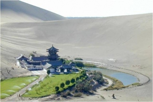 一弯新月嵌大漠,