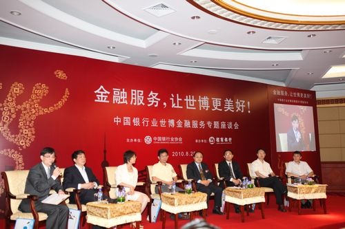 2010年8月28日上午,由 中国银行业协会主办的“金融服务,让世博更美好!”--中国银行业世博金融服务专题座谈会在上海国际会议中心隆重召开。中国银监会办公厅主任廖岷和我出席会议并讲话,上海市金融工作委员会书记季文冠以及上海银监局副局长蒋明康、招商银行张光华副行长出席会议并致辞。中国银行业协会会员单位相关负责人及员工 代表、客户代表、新闻媒体代表等80余人参加了会议。大会由中国银行业协会第一副秘书长周永发主持。