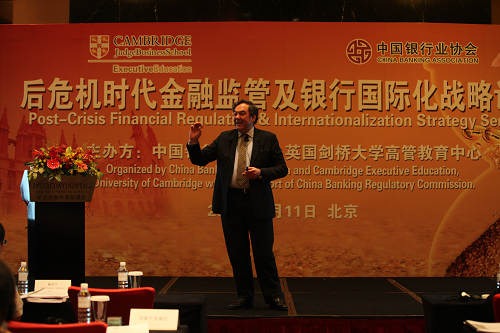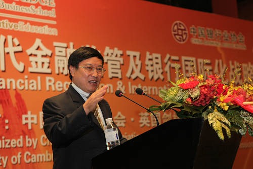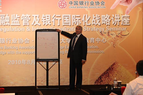 8月11日,由中国银行业协会、英国剑桥大学高管教育中心合作主办的"后危机时代金融监管及银行国际化战略讲座"在京举行。中国银监会纪委书记王华庆应邀出席并致辞,剑桥大学政策学教授、王后学院院长伊特韦尔勋爵以及剑桥大学商学院荣誉教授威廉姆森先生分别以"金融危机与监管者的职能"和"国际化发展战 略-机遇、难题和教训"为主题进行了讲座。应邀出席讲座的还有中国银监会办公厅主任廖岷、中国银行业协会秘书长陈远年、中国银行业协会第一副秘书长周永发,以及来自31家会员银行的近50名高管代表。我主持了讲座。