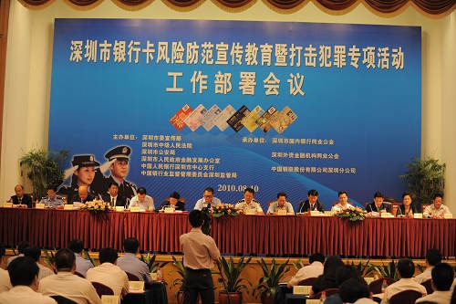 为迎接2011年第26届世界大学生运动会、2010年第16届亚运会,深圳市银行业金融机构共同参与的“深圳银行业迎大运、迎亚运优质文明服务系列活 动”8月10日启动。同日,深圳市委宣传部、深圳市中级人民法院、深圳市公安局、深圳市人民政府金融发展办公室、中国人民银行深圳市中心支行、中国银行业监督管理委员会深圳监管局等六部门联合召开了“深圳市银行卡风险防范宣传教育暨打击犯罪专项活动”工作部署会议,对共同防范、打击银行卡犯罪,开展公众教 育等工作进行了安排。深圳市委常委、副市长陈应春、深圳市委常委、市公安局局长李铭以及深圳银监局局长熊良俊、人民银行深圳中心支行行长张建军等领导出席会议。