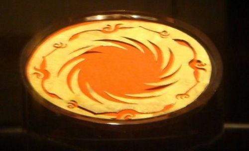 金沙,成都近郊另一遗址,2001年发现。离三星堆60公里,起始时间为三星堆消失后500多年,巨今三千多年。亦大量金玉象牙等宝物,尤其太阳神鸟金盘,美轮美奂,千古绝妙绝唱……有词为证: