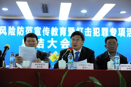 2010年12月20日,深圳市银行卡风险防范宣传教育暨打击犯罪专项活动总结大会在深圳市人民银行培训中心召开。深圳市委宣传部、深圳市中级人民法院、深圳市公安局、深圳金融办、人民银行深圳市中心支行、深圳银监局等六部门的领导出席会议,深圳市各银行机构行长、部门总经理等120多人参加会议。会议由深圳银监局巡视员肖玉淮主持。