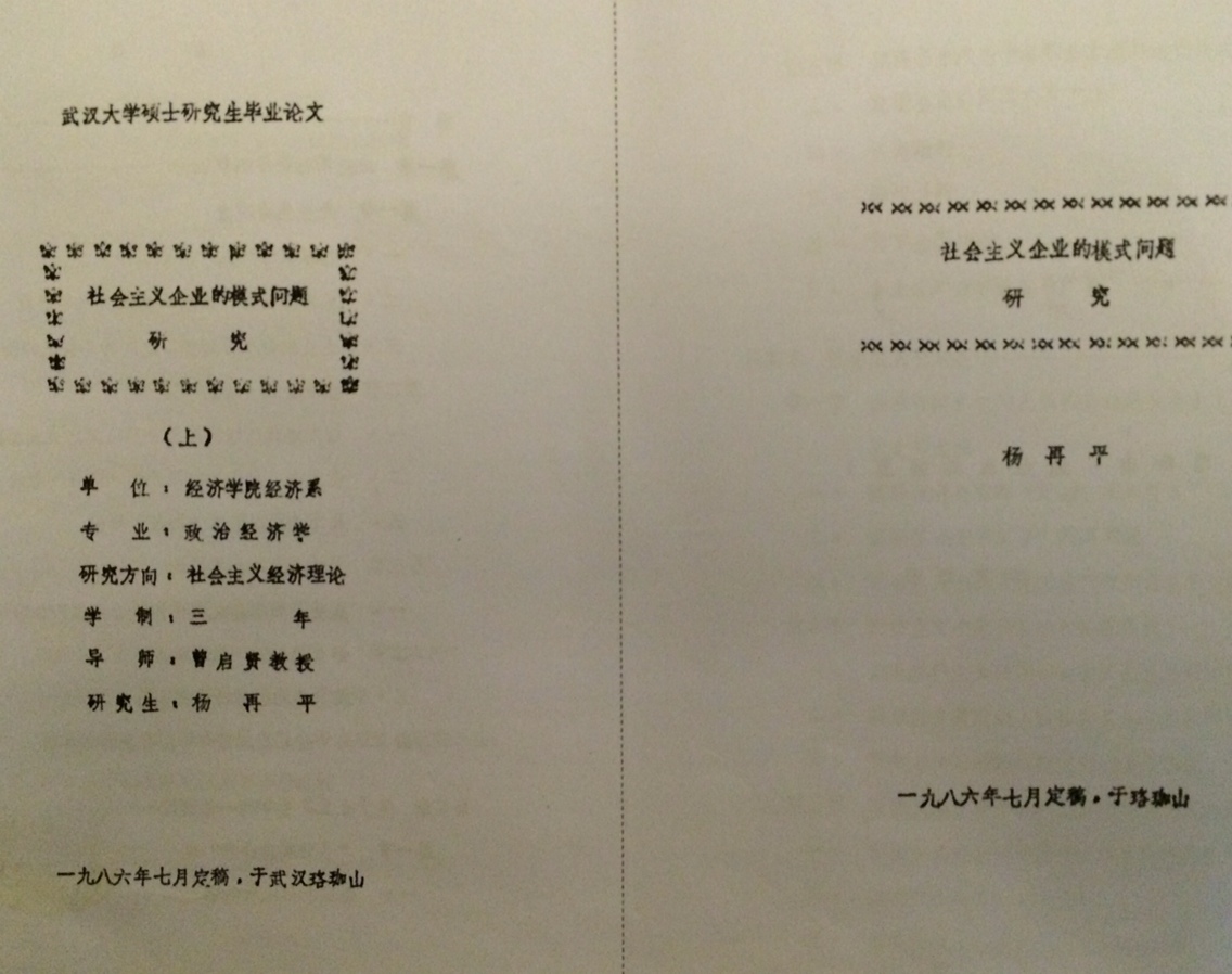 最后,要衷心感谢武汉大学通过扫描把我28年前的硕士论文保存下来了,非常感动!当年将《社会主义企业模式问题研究》这篇硕士论文完善后给湖北人民出版社出版,责任编辑与编辑室主任高度认同,很快跟我签了出版合同,