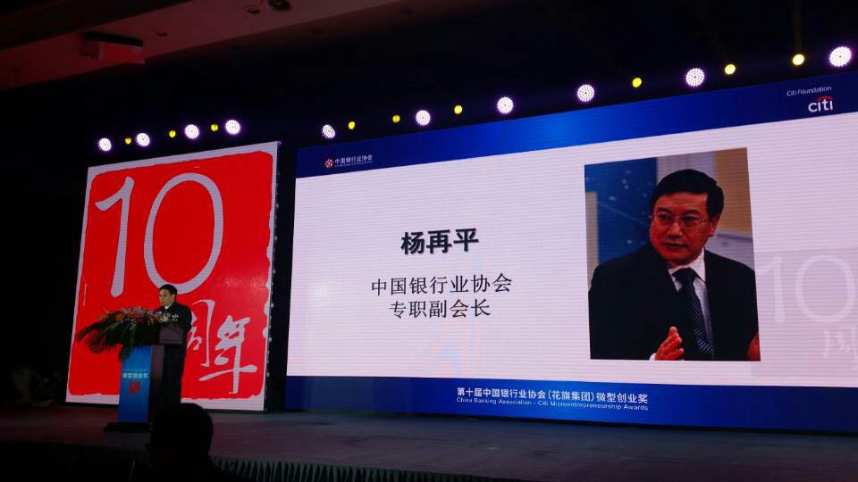 由中国银行业协会主办,花旗基金会赞助,人力资源和社会保障部、全国妇联、中国扶贫基金会和中国小额信贷联盟协办,中国国际经济技术交流中心承办的中国银行业协会(花旗)微型创业奖评选活动已经在中国走过了十个年头,表彰了上千名优秀的微型创业者和信贷员,受到了各级领导、相关政府机构、小额信贷机构和媒体越来越多的关注和支持,取得了巨大成功。近两年还重点开展了优秀小额信贷机构的评选,大力弘扬了小额信贷机构在扶贫领域的作用以及微型企业家们的才能和成绩,有力地促进了中国普惠金融体系的建设和小额信贷技术的发展。在此我谨代表中国银行业协会,向本次及历次获奖的小额贷款机构、优秀客户和优秀信贷员表示热烈的祝贺!对前来参加颁奖典礼的各位领导、各位获奖代表、小额信贷机构代表以及各界人士和媒体代表表示热烈的欢迎!