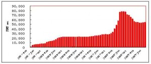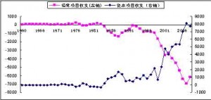 在美元本位制下,美国的贸易逆差越来越大。2007年美国贸易赤字为7100亿美元,2008年依然达到6800亿美元(图1)。