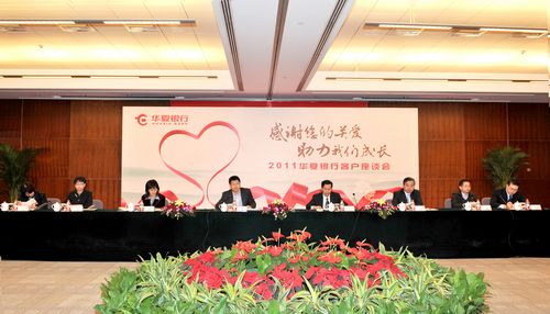 2011年11月18日,由华夏银行主办的2011华夏银行客户座谈会在京召开。华夏银行樊大志行长、成燕红监事长、李国鹏工会主席以及总行有关部门的负责人及11位客户代表参加了会议。中国银行业协会副秘书长周永发应邀出席了会议并讲话。会议由华夏银行办公室黎清主任主持。