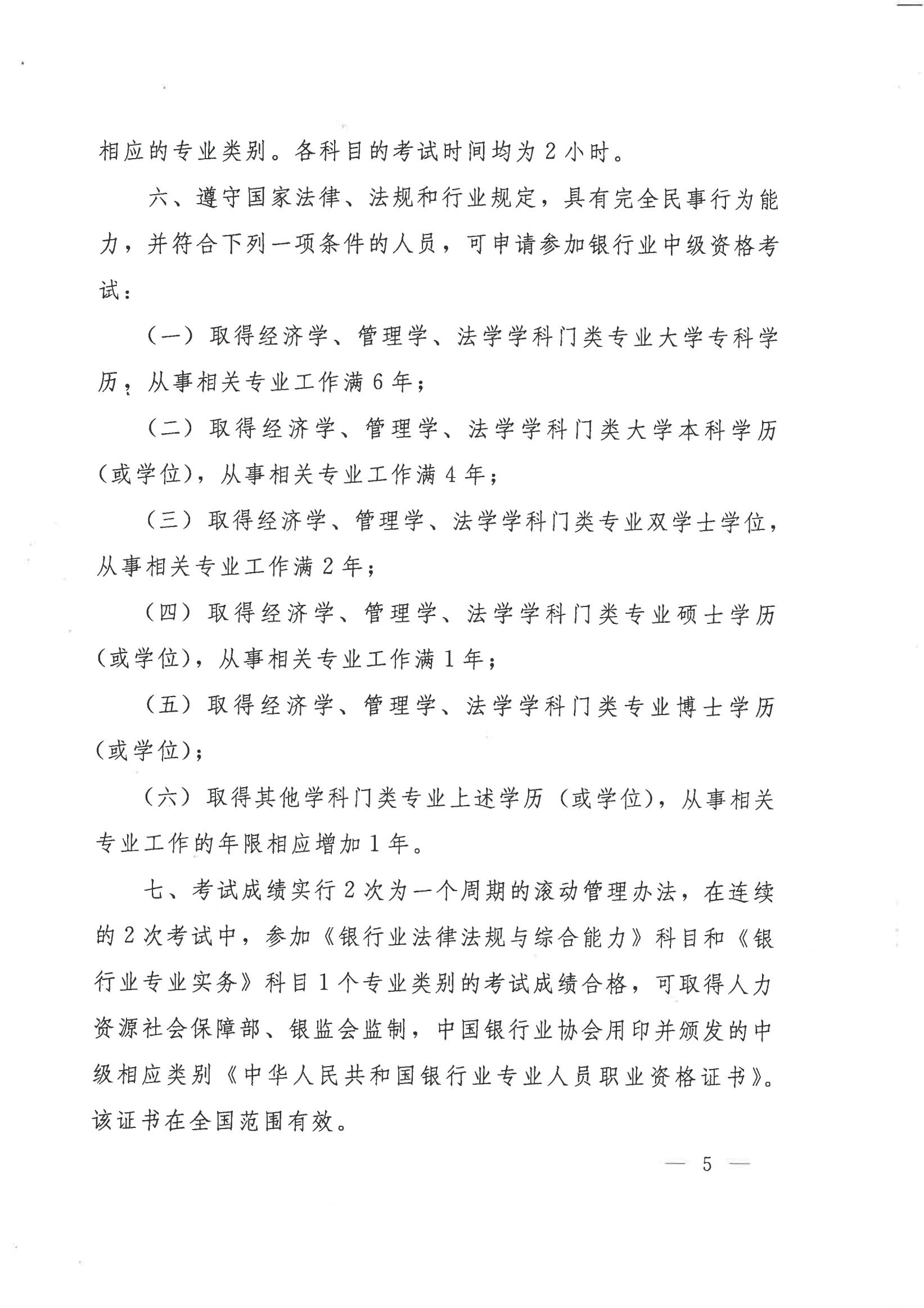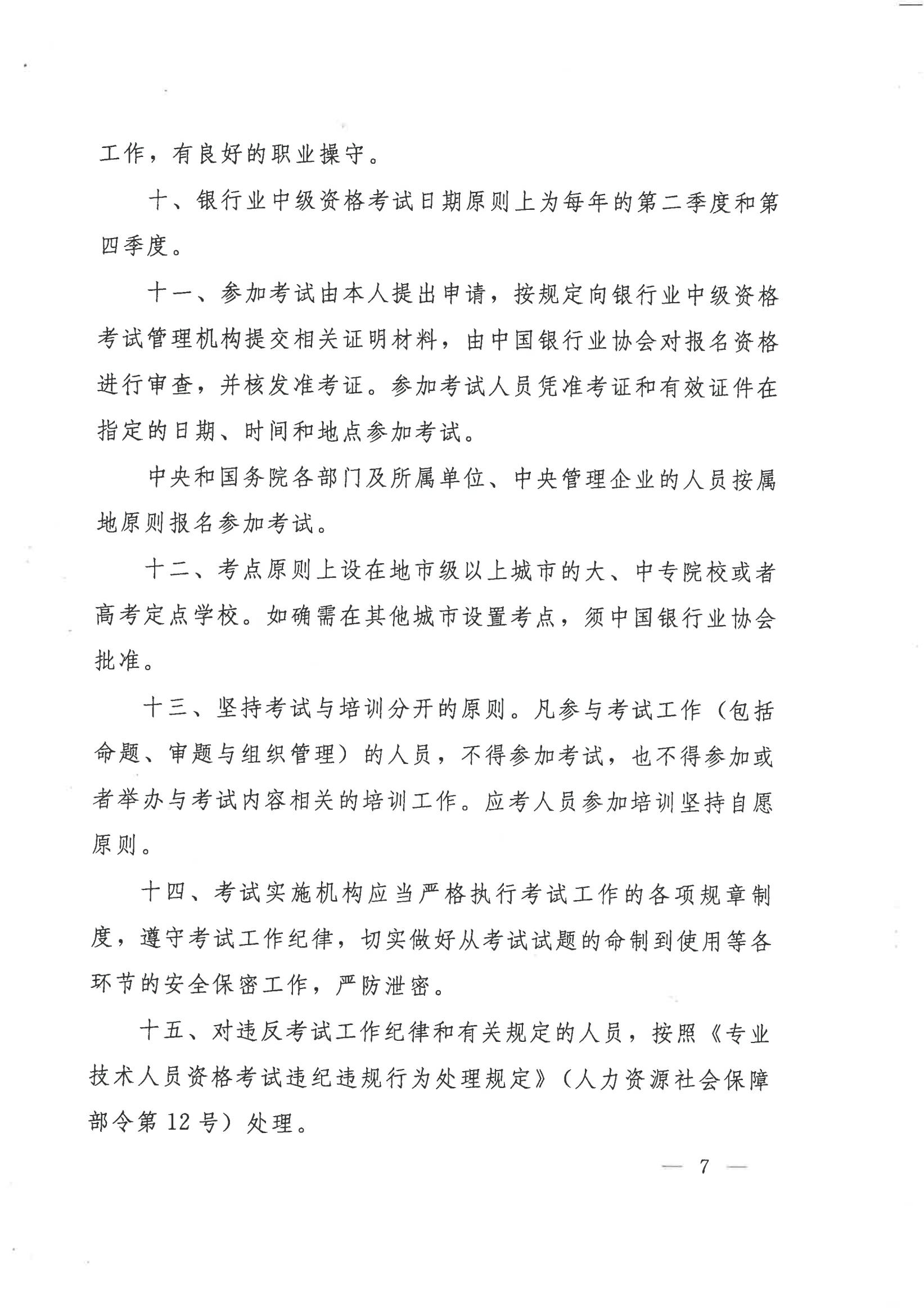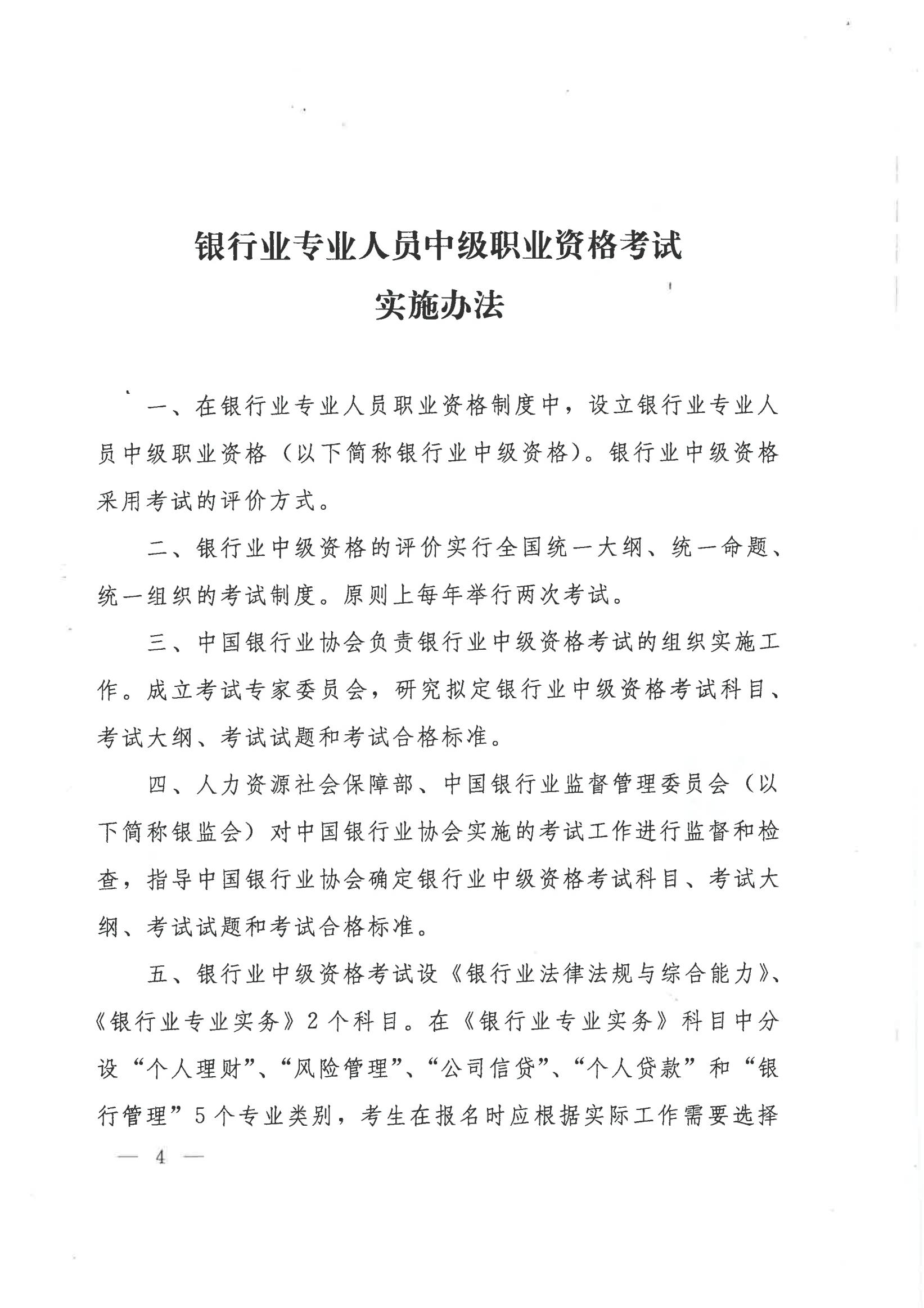 人社部办公厅 银监会办公厅 关于印发银行业专业人员初级职业资格考试实施办法补充规定和银行业专业人员中级职业资格考试实施办法的通知(人社厅发〔2015〕55号 )
