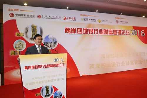 5月20日,由中国银行业协会、香港银行学会和金融时报社主办,澳门金融学会和广东银行同业公会协办的“2016年两岸四地银行业财富管理论坛暨第七届全国杰出财富管理师评选表彰活动”在广州举行。中国银监会、广东省金融办、广东银监局、广州市金融局等有关领导以及来自两岸四地银行业财富管理领域的近160余名业界代表、专家学者和新闻媒体代表参加了会议。广东省金融办副主任倪全宏、中国银行业协会专职副会长杨再平、银监会业务创新部处长苏薪茗、广东银监局副巡视员李兵、香港金融管理局副总裁阮国恒、香港银行学会行政总裁梁嘉丽、金融时报社副总编赵学锋等领导出席论坛并讲话。论坛由中国银行业协会行业服务总监周永发主持。