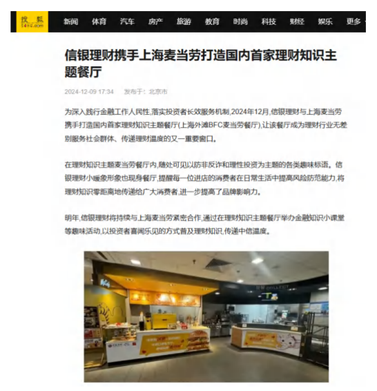 国内首家理财知识主题麦当劳餐厅 ——信银理财理财业务投资者同行陪伴基地案例