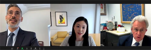 圆桌论坛期间,与会代表就中瑞两国在财富管理等领域的合作路径和发展诉求等议题展开了热烈的探讨。中国银行个人数字金融部私人银行中心总经理王亚、北京银行零售业务总监李建营和瑞士埃德蒙·罗斯柴尔德银行私人银行部首席执行官米歇尔·隆基尼围绕“后疫情时代中瑞财富管理和资产管理行业的发展趋势和监管重点”议题进行了分享。瑞士宝盛集团亚洲区总经理克里斯蒂安·卡裴利、瑞银集团亚太区战略部总经理彭婷(音)、瑞士信贷集团大中华区副董事长乌尔斯·布赫曼围绕“瑞资金融机构进入中国市场的现状和机遇”议题进行了讲解。