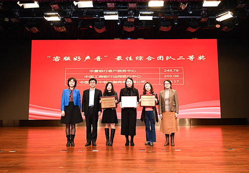 在决赛风采展示环节中,各代表队以朗诵、快板、歌唱、微小品等丰富多彩的形式充分展现了数字化、智能化、有温度、有情怀的远程银行服务;知识竞答环节围绕工作技能、客服业务及金融知识等开展了紧张比拼,比赛现场气氛不断推向高潮,体现了客服人员全面扎实的业务功底。经过激烈的角逐,最终中国农业银行客户服务中心、中国民生银行运营管理部、中国建设银行远程智能银行中心荣获“客服好声音”最佳综合团队一等奖;华夏银行客户服务中心、中国工商银行远程银行中心、中国银行中银金融商务有限公司荣获“客服好声音”最佳综合团队二等奖;徽商银行个人移动金融部客服中心、上海银行渠道管理部客户服务中心、交通银行客户服务中心、北京银行电子银行部客户服务中心荣获“客服好声音”最佳综合团队三等奖。出席本次大会的领导为获奖单位和个人现场颁发奖牌。