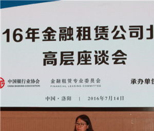 2016年7月14日, "2016年金融租赁公司北方区高层座谈会" 在河南洛阳顺利召开。会议由金融租赁专业委员会专职副主任金淑英主持,银监会非银部副主任徐春武、河南省银监局副局长李焕亭出席会议。北方区23家金融租赁公司的主要负责人及高层管理人员共计60余人参加了会议。此次会议由洛银金融租赁公司承办。