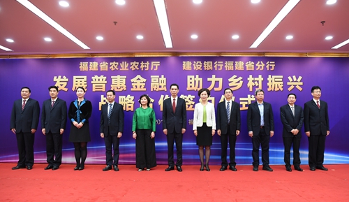 10月24日,调研组一行来到福州,出席“福建省农业农村厅与建行福建省分行乡村振兴战略合作签约仪式”。中国银行业协会副秘书长张亮、建行总行普惠金融事业部副总经理李晓芳、公共关系与企业文化部副总经理柴翔,福建省地方金融监管局,人民银行福州中心支行、福建银监局的负责同志及十余家中央媒体和签约双方负责人共同见证战略合作签约。根据协议,未来五年建行将提供不低于3000亿元的意向性贷款,助力打造福建省十个特色农业产业,支持特色现代农业提质增效“五千工程”。