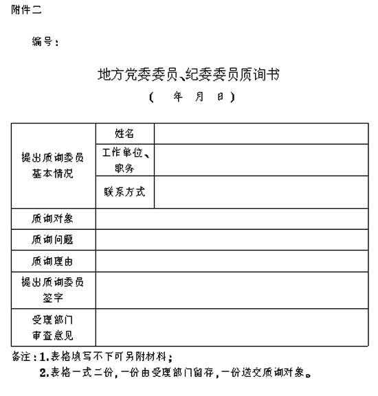 附件二:《地方党委委员、纪委委员质询书》