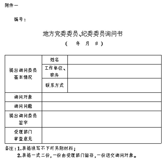 附件一:《地方党委委员、纪委委员询问书》