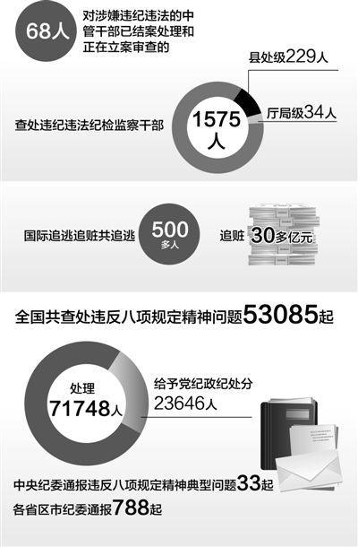 保持惩治腐败高压态势,遏制腐败蔓延势头。各级纪检监察机关按照中央要求,坚持有腐必惩、有贪必肃,以零容忍态度惩治腐败,重点查处党的十八大后不收敛不收手,问题线索反映集中、群众反映强烈,现在重要岗位且可能还要提拔使用的领导干部,严肃查办审批环节设租寻租,插手工程建设、项目开发等重点领域、关键环节的腐败问题。中央纪委对涉嫌违纪违法的中管干部已结案处理和正在立案审查的68人,周永康、蒋洁敏、李东生、李崇禧、申维辰等涉嫌犯罪已被移送司法机关依法处理;目前,正在立案审查的还有令计划、苏荣等案件。从教育和挽救干部的角度出发,对党员干部身上的问题早发现、早提醒、早纠正、早查处,对一般性、苗头性问题及时约谈、函询。