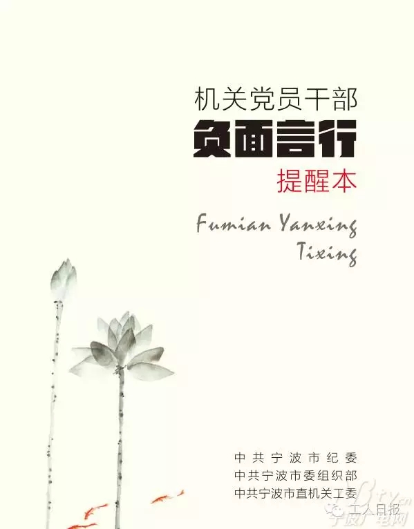 日前,浙江宁波推出《机关党员干部负面言行提醒本》,提醒党员干部哪些话不能说、哪些事不能做。