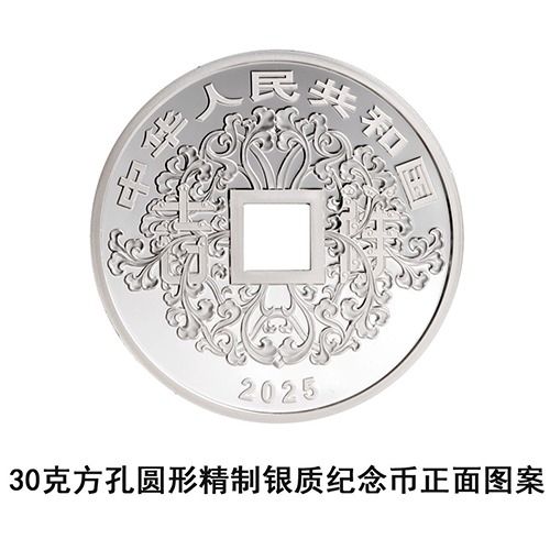 30克方孔圆形银质纪念币为精制币,含纯银30克,直径40毫米,内孔7毫米×7毫米,面额10元,成色99.9%,最大发行量20000枚。