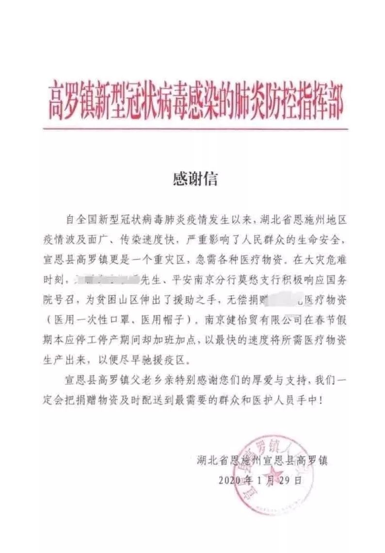 作为湖北省的贫困地区,湖北省恩施州宣恩县高罗镇同样是感染的重灾区,对医疗物资的需求更是迫在眉睫。