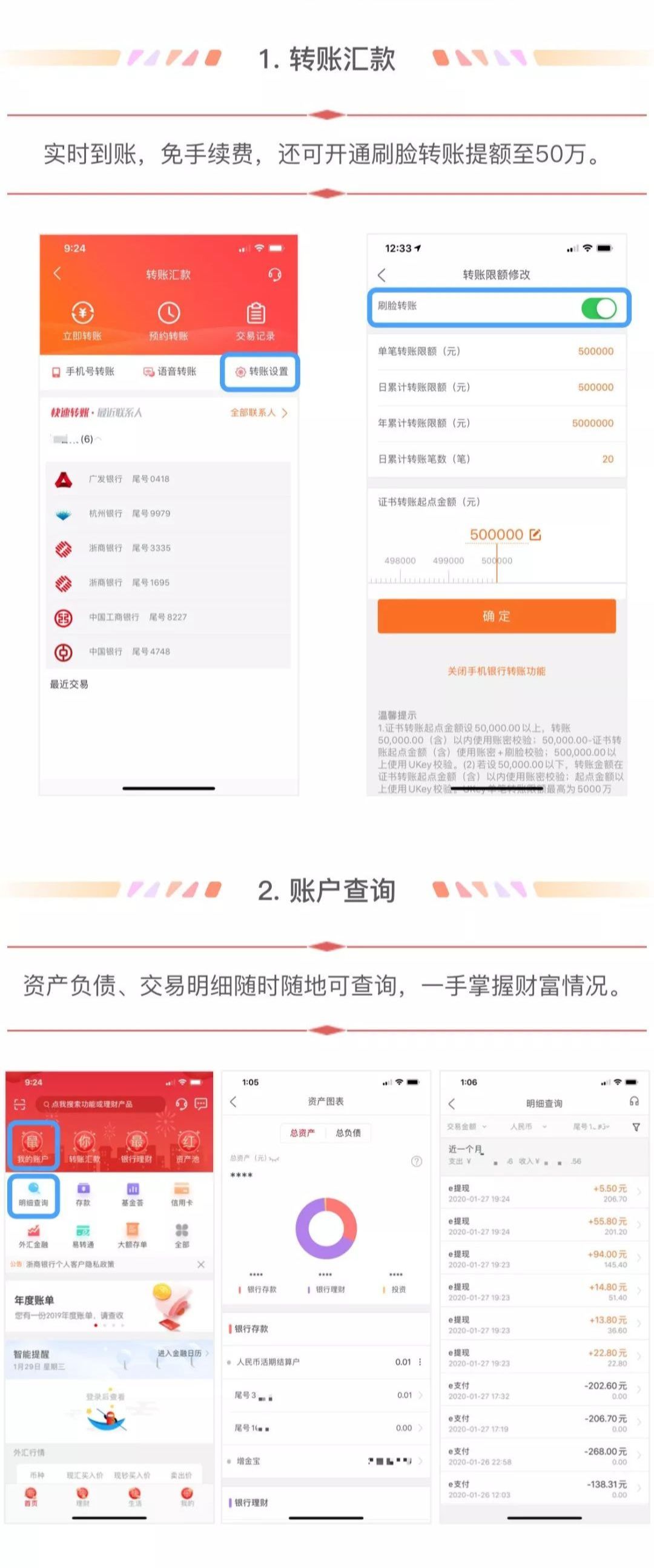 转账汇款、账户查询、存款理财、