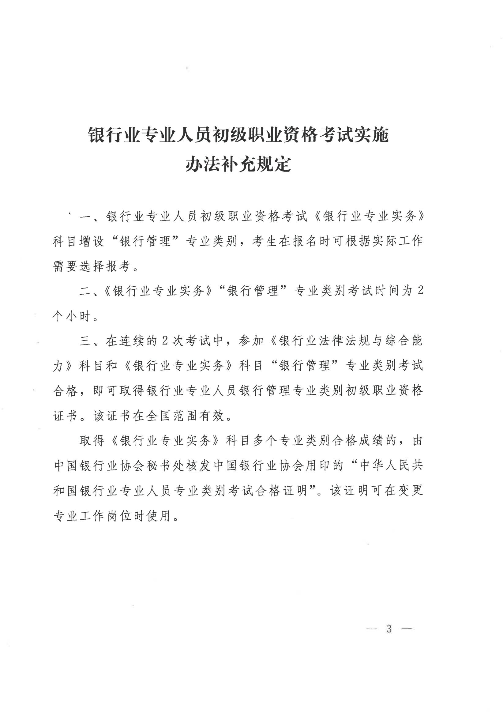 人社部办公厅 银监会办公厅 关于印发银行业专业人员初级职业资格考试实施办法补充规定和银行业专业人员中级职业资格考试实施办法的通知(人社厅发〔2015〕55号 )