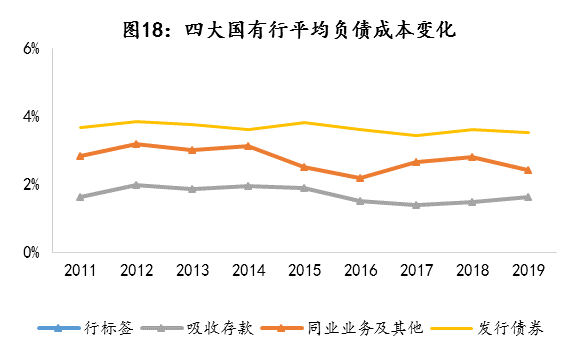 一般来讲,经济基本面影响长端利率,而货币市场政策影响短端利率。从2014年至2015年,央行实行稳健偏宽松的货币政策,先后多次降低法定存款准备金率,并推出MLF、SLF和PSL等多种货币政策工具来对冲经济下行的风险。这一时期,市场利率下行趋势明显,存款、同业等负债成本随着利率下行出现回落。从2016年至2018年,货币政策转为稳健偏紧缩,市场利率上行,负债成本随之上升。