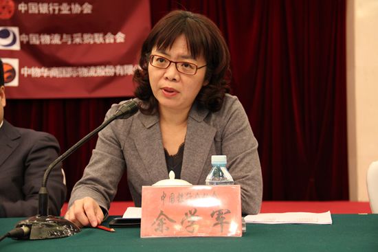 中国银行业协会第一副秘书长余学军在会上发表了《搭建物流金融信息平台,实现银行企业合作共赢》为题的讲话,她指出:银行业金融机构要提高对银行业与物流企业的合作重要性的认识,通过银行、物流企业、借款人等“经济人”的多维合作,努力实现“共赢”的社会效果。银行业与物流企业的合作有利于银行业拓宽业务领域,扩大银行的经营规模,增强银行的竞争能力。有利于实现银企信息对称,控制物流金融信用风险、市场风险和操作风险。有利于中小企业降低融资成本、高效率实现融资需求。要积极对待银行业与物流企业的合作。银行业、物流业要在政府有关机构的支持下,实现银行业金融机构与物流企业共建资金流、物资流和信息流互补、共享机制。希望全国性物流金融信息平台系统运行后,各银行业金融机构应在充分评估本单位物流金融发展状况与风险管理能力的基础上,以适当方式加入、检验并运用该系统。作为全国性的银行业自律性组织,开展与物流行业的合作的根本目的在于推进物流金融事业的发展,以务实姿态为会员单位提供高层次、高质量、高效益的优质服务。她希望在政府有关部门、司法机关、银行业监管机构支持下,在行业协会、银行业、物流业共同努力下,共同打造集权威性、保密性、服务性于一体银行业与物流业紧密结合的物流金融信息平台。