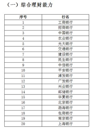 2015年5月22日,在上海举办的“2015年两岸四地银行业财富管理论坛”上,中国银行业协会发布了首份商业银行综合理财能力评价体系及评价结果。