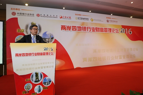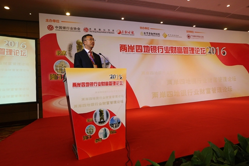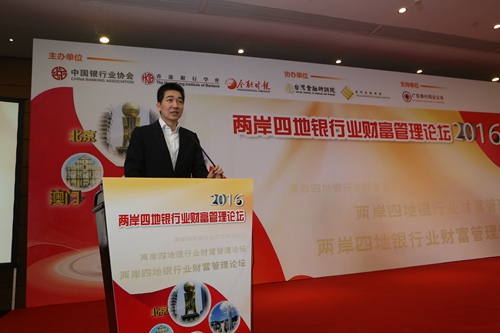 5月20日,由中国银行业协会、香港银行学会和金融时报社主办,澳门金融学会和广东银行同业公会协办的“2016年两岸四地银行业财富管理论坛暨第七届全国杰出财富管理师评选表彰活动”在广州举行。中国银监会、广东省金融办、广东银监局、广州市金融局等有关领导以及来自两岸四地银行业财富管理领域的近160余名业界代表、专家学者和新闻媒体代表参加了会议。广东省金融办副主任倪全宏、中国银行业协会专职副会长杨再平、银监会业务创新部处长苏薪茗、广东银监局副巡视员李兵、香港金融管理局副总裁阮国恒、香港银行学会行政总裁梁嘉丽、金融时报社副总编赵学锋等领导出席论坛并讲话。论坛由中国银行业协会行业服务总监周永发主持。
