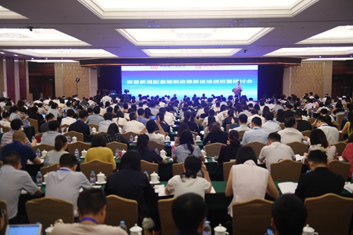 8月22日—23日,由中国银行业协会主办、北京银行承办的资管新规配套细则政策解读培训班暨研讨会在北京举行。中国银行业协会专职副会长潘光伟、中国银保监会创新部主任李文红、北京银行行长助理兼公司业务总监戴炜致辞,全国社会保障基金理事会原副理事长王忠民发表主旨演讲。本期培训授课老师为中国银保监会创新部产品处刘丽娜处长,中国银保监会现场检查局资管业务检查处郑建库处长,中国人民银行金融研究所前所长、现大成基金首席经济学家姚余栋,中国人民银行金融稳定局李岩专家,兴业银行资产管理部副总经理汪圣明,交通银行私人银行部副总经理桂泽发,招商银行资产管理部副总经理董方,中信证券资产管理部总监魏星等。来自商业银行、证券公司、信托公司、基金公司、期货公司、律师事务所等机构的部分高级管理人员和资产管理条线的部门负责人及业务骨干参加了培训,参训人员500人左右。中国银行业协会副秘书长白瑞明和中国银行业协会协调服务三部副主任侯哲分别主持培训。