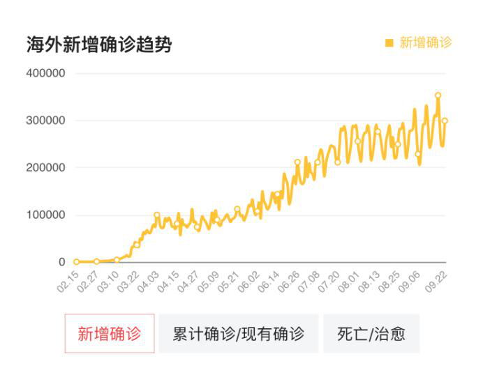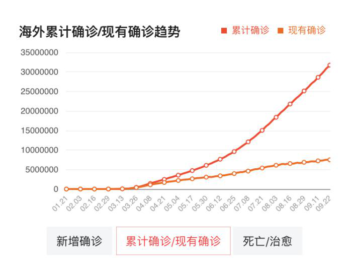 2020年以来,突发新冠肺炎疫情在全球大蔓延,截至9月23日,全球累计新冠肺炎确诊病例3137万例,死亡病例96.6万例。随着印度、巴西等发展中国家病例快速增长,以及欧洲部分国家二次爆发疫情,仍未看到新增确诊拐点和现有确诊拐点两个关键点。